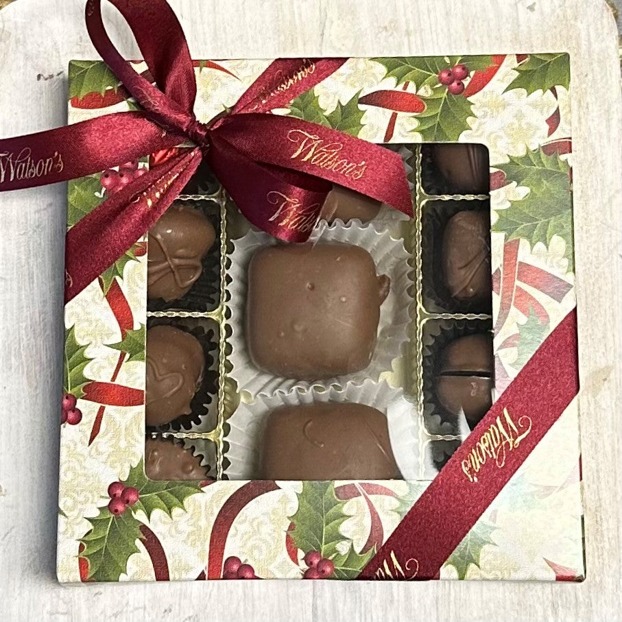 Looking for the perfect chocolate gift to share with a friend, neighbor, teacher, or co-worker? 8-pieces of our favorite assorted chocolates; includes milk and dark chocolates, alongside 3 beautiful pieces of milk chocolate Sponge Candy. Net wt. 5.75 oz.