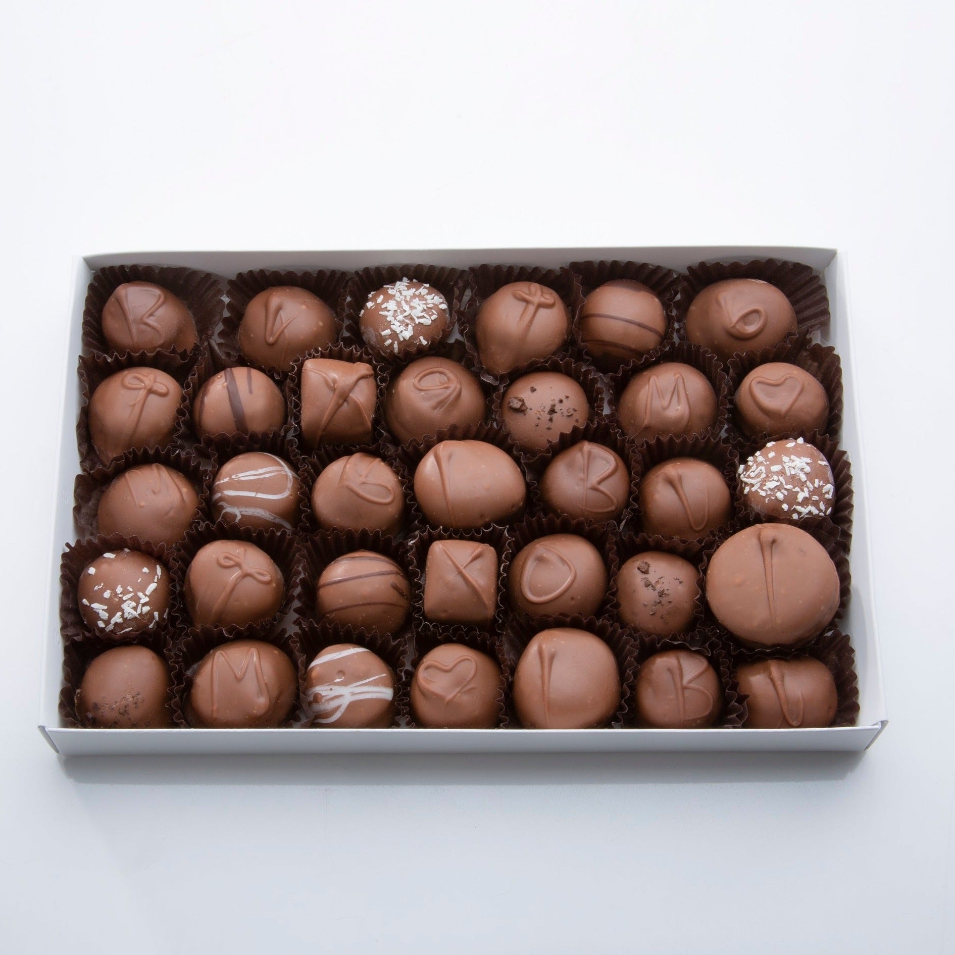 Presented in Watson's signature gold box, this assortment includes a variety of our favorite soft centered candies, including our to-die-for butter creams, vanilla creams, espresso creams, maple-walnut creams, raspberry creams and much more. Available in milk chocolate, dark chocolate, or a combination of the two.