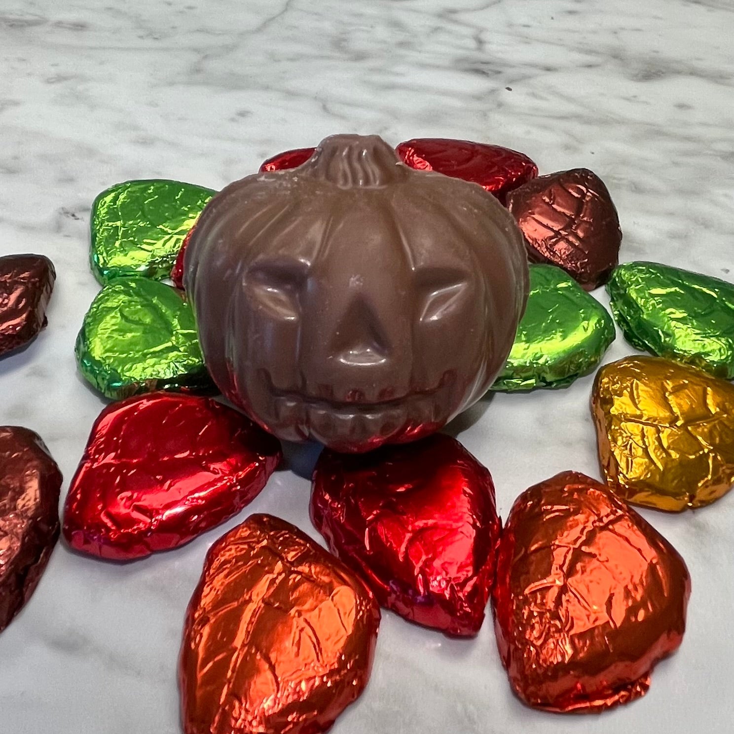 This adorable pumpkin is both delicious and delightfully eerie! Made from creamy milk chocolate, it weighs 2oz and is perfect for a sweet Halloween treat.